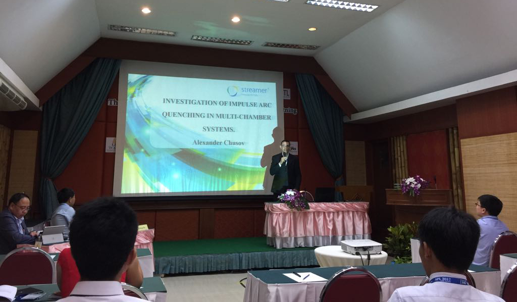 Alexander Chusov delivered his paper “Investigation of Impulse Arc Quenching in Multi-chamber Systems” the results of his work on creating LLPDs mathematical model, which in the future will allow improving the design in numerical form, thereby significantly reducing the time and the costs for creation of Streamer new devices.