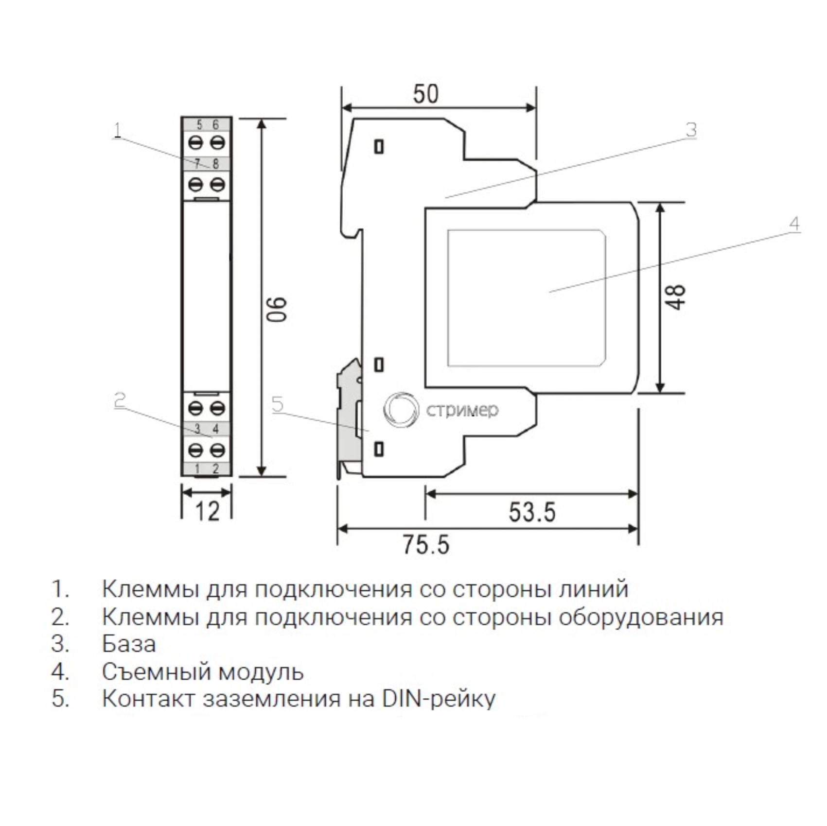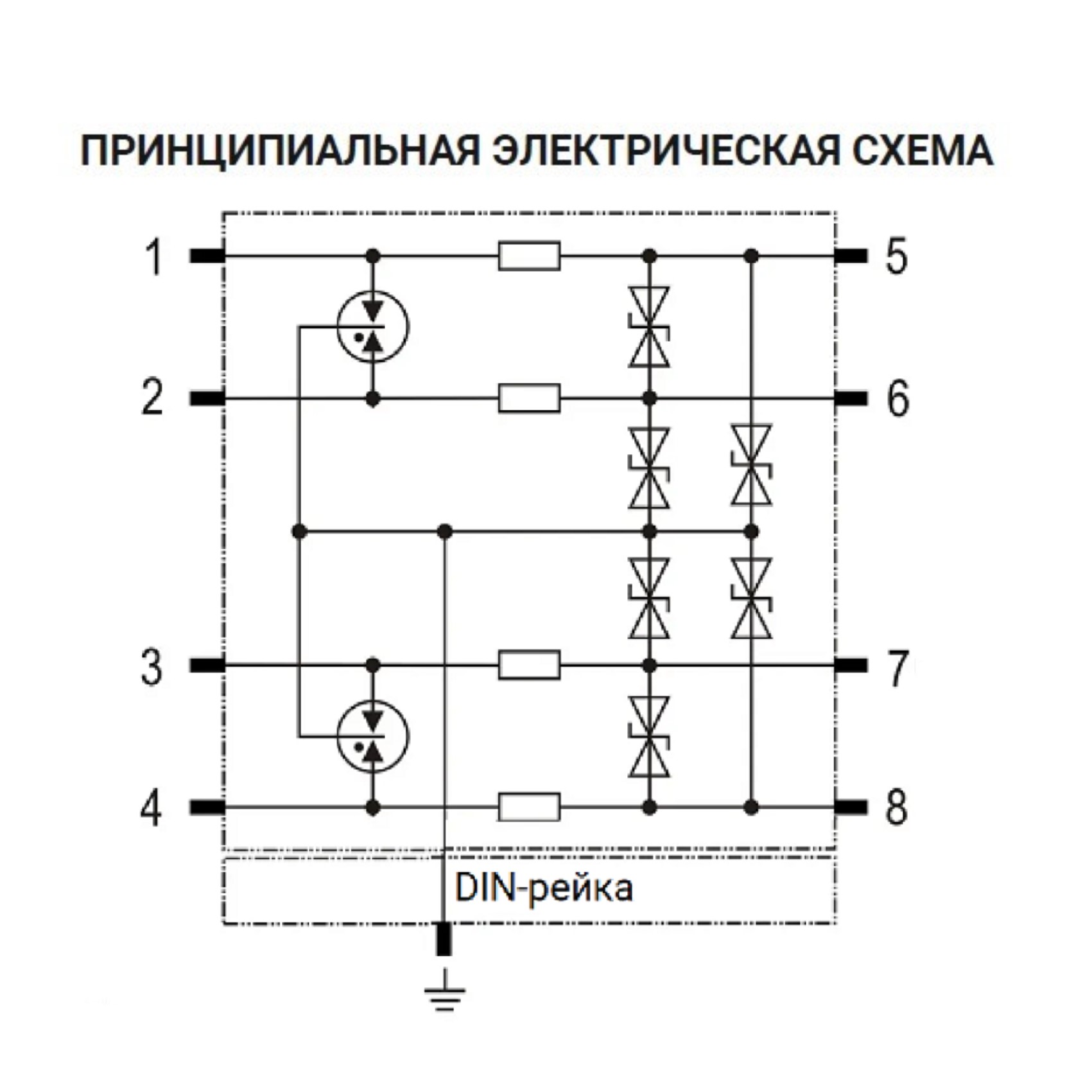 Количество защищаемых проводников (пар) — 4 (2). Подключение с помощью винтовых клемм.