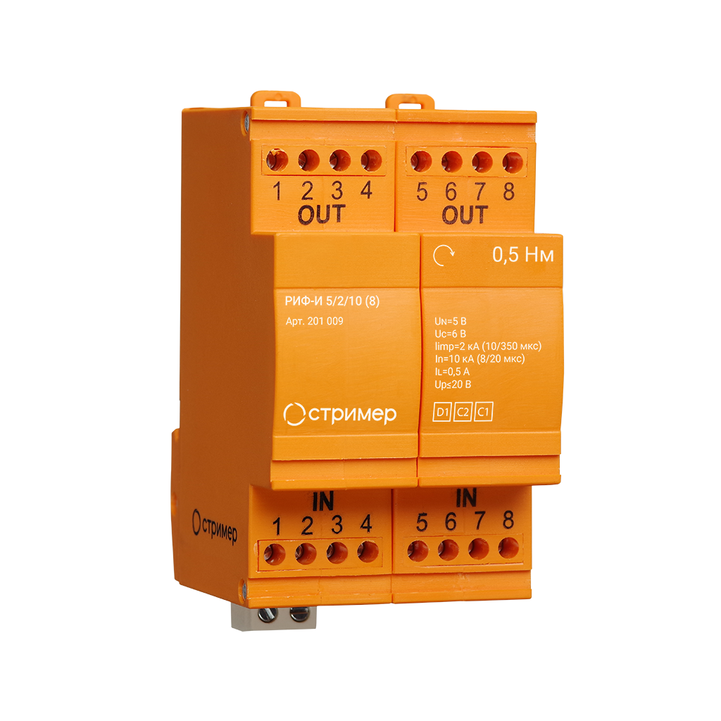 Обеспечивает защиту 2-х пар сигнальных линий. Подключение с помощью винтовых клемм.