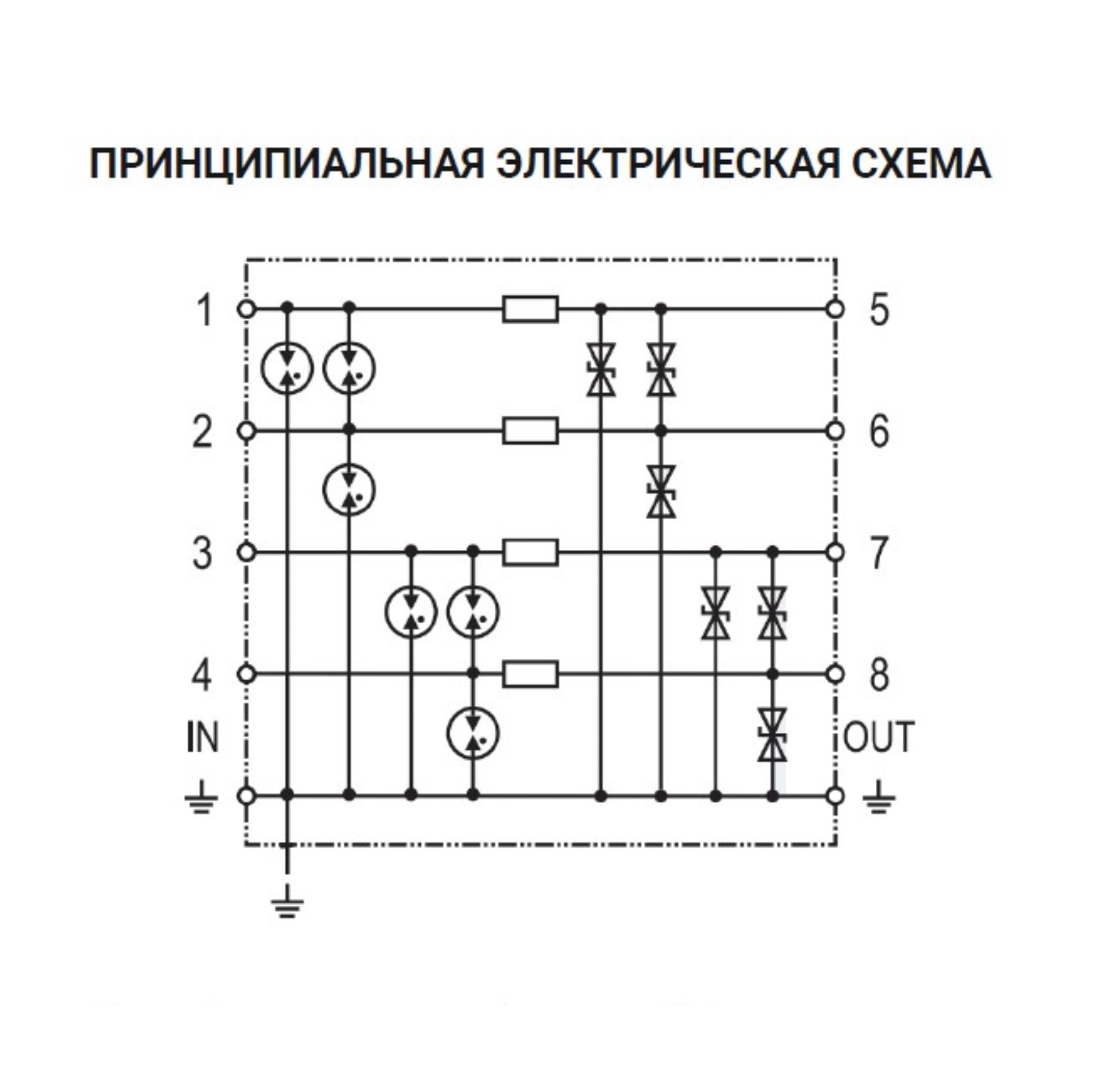 Количество защищаемых проводников (пар)– 4 (2), подключение с помощью винтовых клемм.