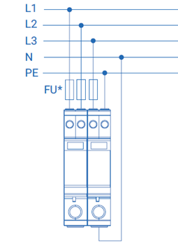 Предназначено для защиты фазного и нулевого проводников L/N, N/PE от перенапряжений «провод–провод».