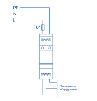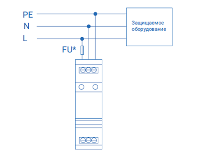 Применяется для сетей однофазного напряжения питания. Возможна установка после УЗО из-за отсутствия тока утечки.
