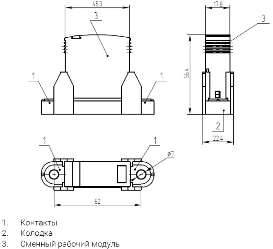 УЗИП состоит из колодки и сменного рабочего модуля с терморасцепителем и индикатором состояния рабочего элемента.